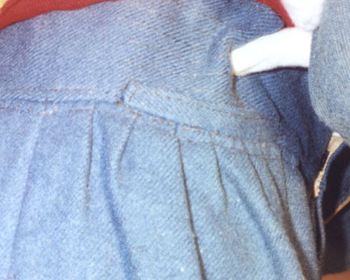 pentagon shaped yoke in the rear of the trowsers and a bar tack