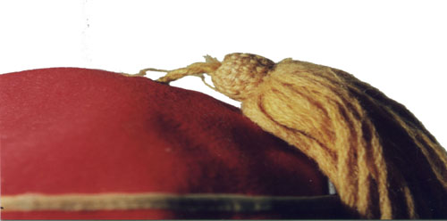 madder red with a yellow wool tassel. The fez is a fine felt and has a