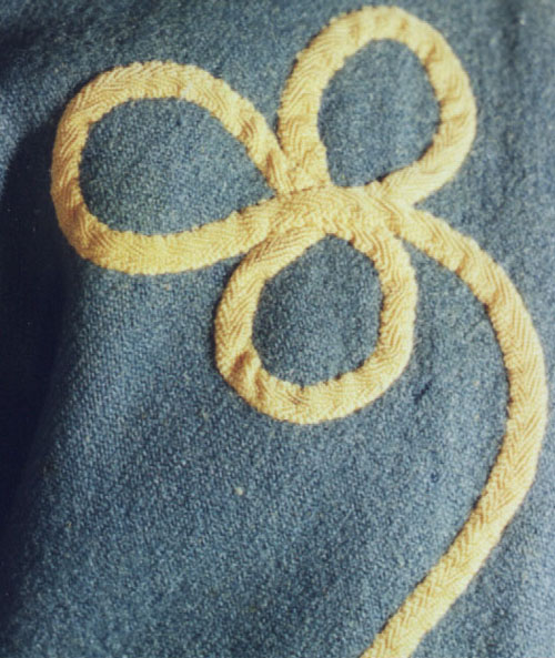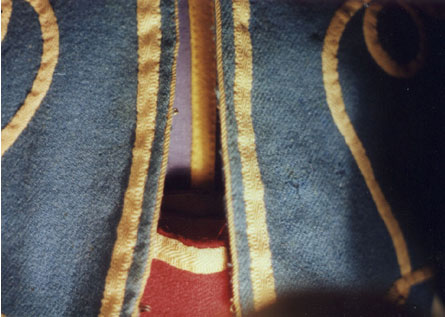 with a 1/2" seam to form a 12" wide sash. There is yellow worsted wool